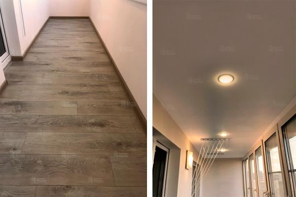 - Пол: сделали выравнивание с уровнем пола в квартире, утеплили и уложили финишное покрытие – линолеум (можно выбрать ламинат, керамическую плитку или кварцвиниловое покрытие)