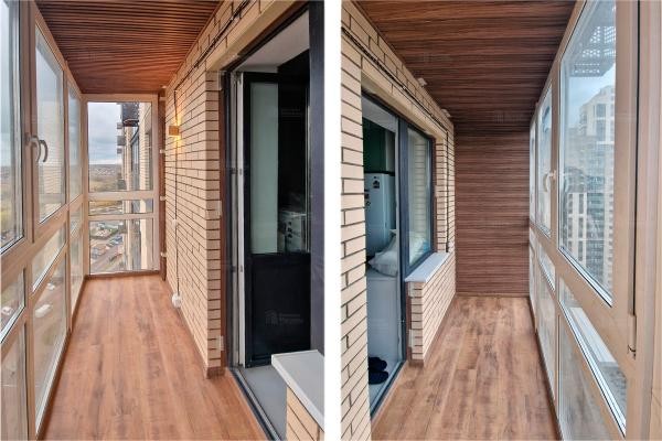 Балкон с остеклением и отделкой рифлеными МДФ панелями под ключ