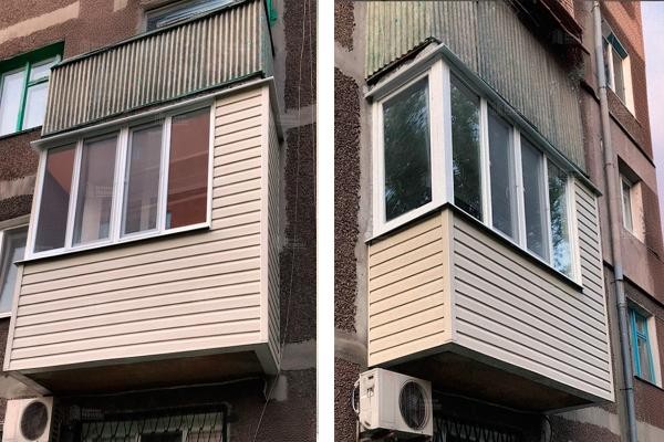 Отделка балкона со стороны улицы: профлист, виниловый сайдинг, металосайдинг. Крепим на прочный сварной каркас. Водоотлив в подарок!