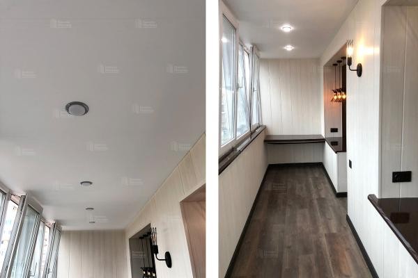 Внутренняя отделка балконов после остекления. Работы под ключ: утепление, монтаж ГКЛ, обшивка вагонкой, панелями ПВХ, укладка пола, установка освещения. Индивидуальный дизайн-проект. Чистая работа с уборкой. Фиксированные цены в договоре.