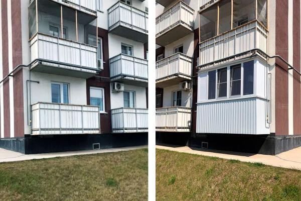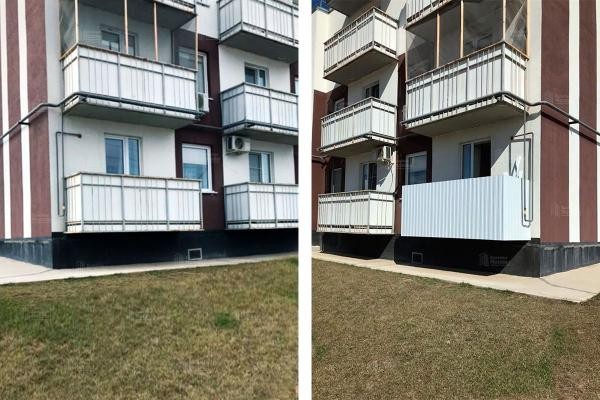 Отделка балкона со стороны улицы: профлист, виниловый сайдинг, металосайдинг. Крепим на прочный сварной каркас. Водоотлив в подарок!