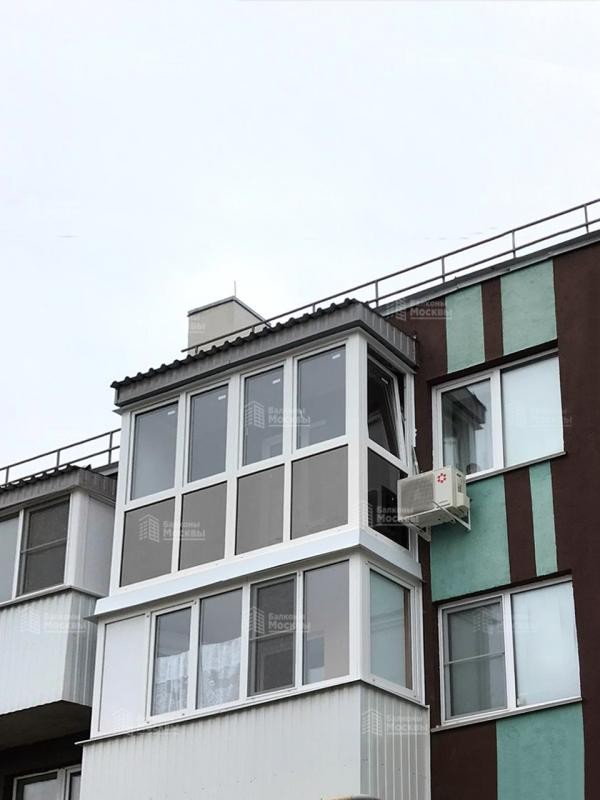 Остекление балкона с панорамным видом, зеркальной тонировкой и энергосберегающими стеклопакетами