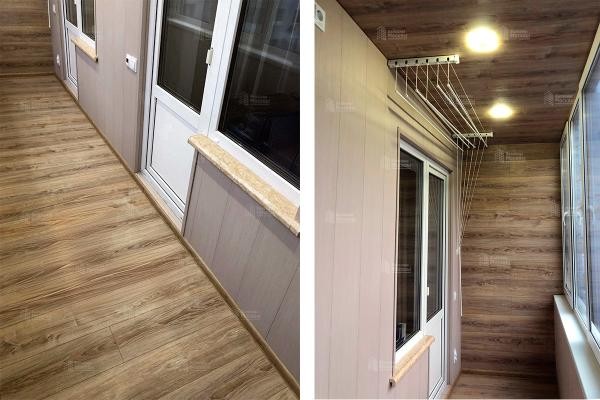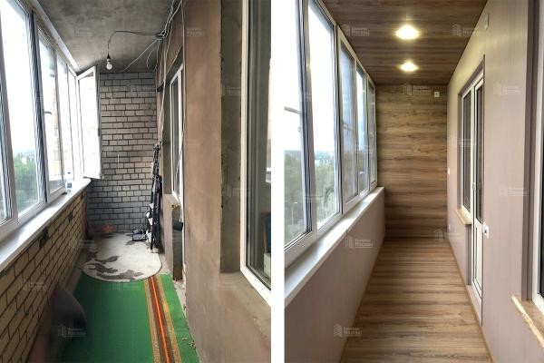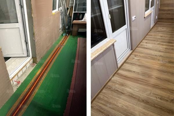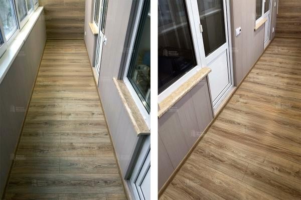 Ремонт лоджии 8 м2 с остеклением, теплым полом, отделкой ламинатом и ПВХ панелями под ключ