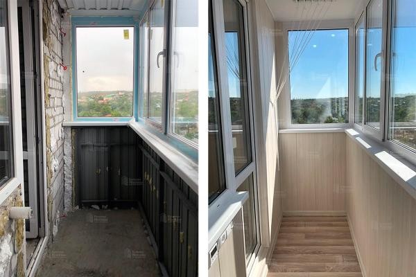 Внутренняя отделка балконов после остекления. Работы под ключ: утепление, монтаж ГКЛ, обшивка вагонкой, панелями ПВХ, укладка пола, установка освещения. Индивидуальный дизайн-проект. Чистая работа с уборкой. Фиксированные цены в договоре.